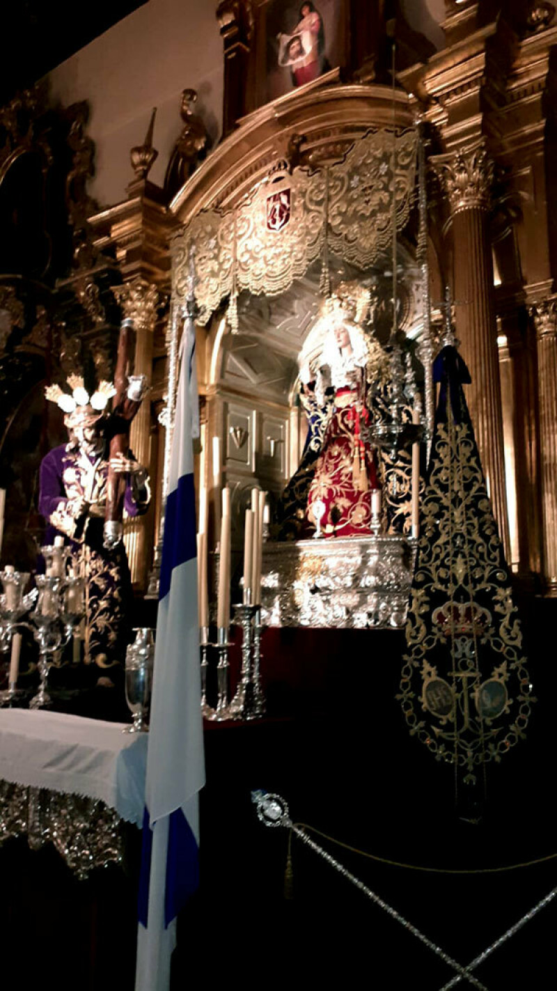 Y como es un día especial, con motivo de la pandemia que estamos sufriendo por el Covid-19, el equipo de Priostía a procedido a montar un altar efímero especial para que los Hermanos/as Fieles y devotos, tenga a sus titulares un poco más cerca.
