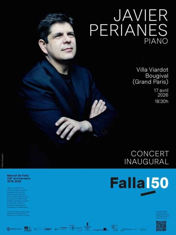 Fundación SGAE impulsa el concierto inaugural Falla150, un recital organizado por el Archivo Manuel de Falla en el que el pianista Javier Perianes interpretará obras de Manuel de Falla, Frédéric Chopin e Isaac Albéniz el viernes, 17 abril de 2026, a las 18:30h en la Villa Viardot (Bougival, Francia. Evento privado. Emisión en directo vía streaming a través del canal VCR Classica +). El recital recuerda aquel concierto de París que promovió la UNESCO en 1996 por el 50º aniversario de la muerte del compositor y que hoy vuelve a colaborar en este homenaje. Cabe recordar, asimismo, que la Fundación Archivo Manuel de Falla, como centro de investigación encargado de custodiar su legado, fue distinguido en 1988 con el Premio Internacional de Música de la UNESCO.