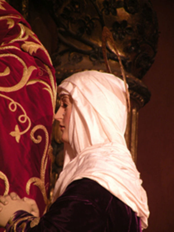 El Stmo Cristo de las siete palabra, documentado como obra original del Imaginero Sevillano nacido en Sevilla en 1651 y bautizado en la Parroquia de San Martin el 16 de Mayo de ese mismo año, terminando la obra entre 1681 y 1682 y policromada por Emilio Pizarro Cruz en 1881; la Virgen de los Remedio, es obra del Sevillano escultor Manuel Gutiérrez Reyes Cano en 1845-1915, varias veces modificada, su actual aspecto corresponde a el escultor Hispalense a Jesús Curquejo Murillo 1991; San Juan Evangelista, se relaciona con el enigmático artista José Sánchez en 1859 y fue modificado por E. Pizarro en 1875; la Imagen de Sta. María Magdalena es obra de Manuel Gutiérrez Reyes-Cano 1867, del mismo escultor son las imágenes de Sta. María Salome y María Cleofás (ambas de 1865 que completa la escenografía procesional.