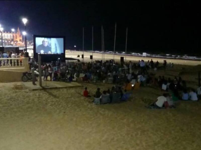 Chipiona, 21 de agosto de 2014.- Chipiona ha recuperado, tras unos años, el cine de verano en la playa. La zona del Monumento a la Luz se llenaba ayer de familias para asistir a la primera de las dos proyecciones programadas con el nombre de Noches Animadas por la Delegación Municipal de Playas con la colaboración de la Delegación de Cultura.