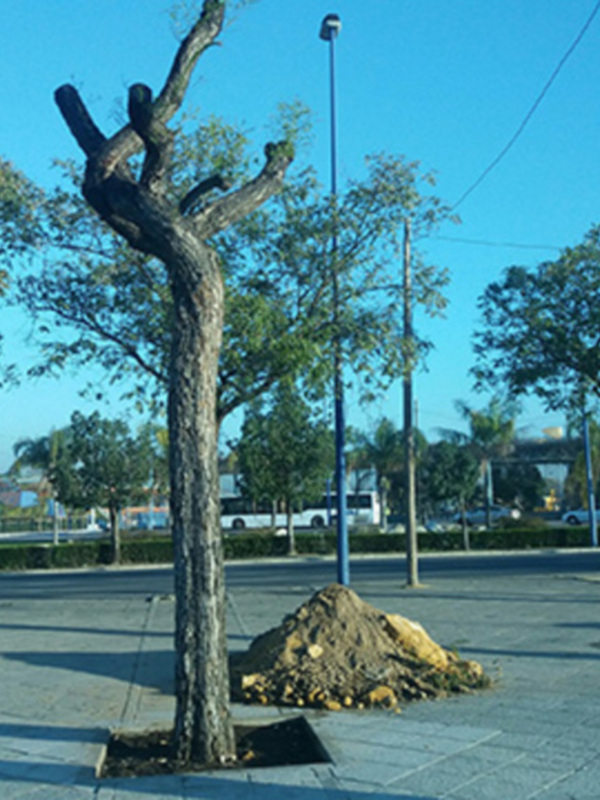 En fechas pasadas informaos de la extracción de arbolado existente (Tipuanas) para permitir la adecuada remodelación del cruce. Una vez finalizados los trabajos, el Ayuntamiento de Sevilla vuelve a reponer los mismo arboles extraídos. Este tipo de recuperaciones y reutilizaciones del mismo arbolado son positivas. No siempre se puede hacer.