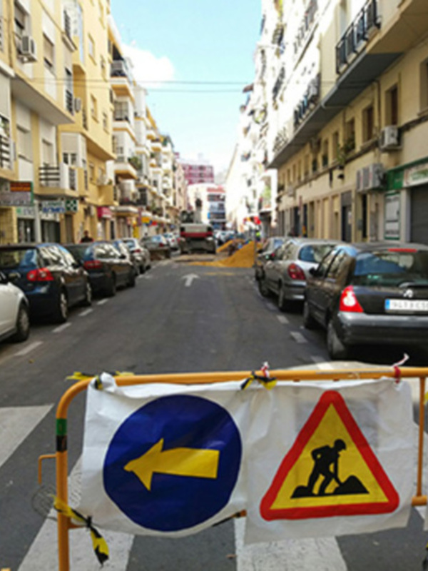 El Ayuntamiento de Sevilla realiza una serie de obras en la calle Madre Rafols en Los Remedios. Las obras tienen por objeto reparación y mejora de la red de agua y saneamiento.