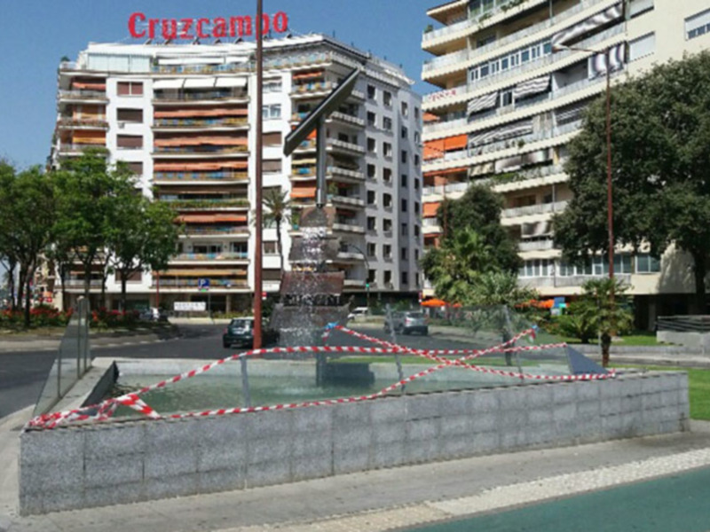 No es la primera vez que esta fuente es objeto de vandalismo. Es un punto de paso importante y de gran afluencia, especialmente durante la Feria. Es una fuente solar que lleva varios años funcionando. A veces el diseño se anticipa a los problemas de vandalismo y lo previene como ocurre en este caso. También es verdad que a veces una buena idea sobre el papel se convierte en el principal punto de vandalismo.