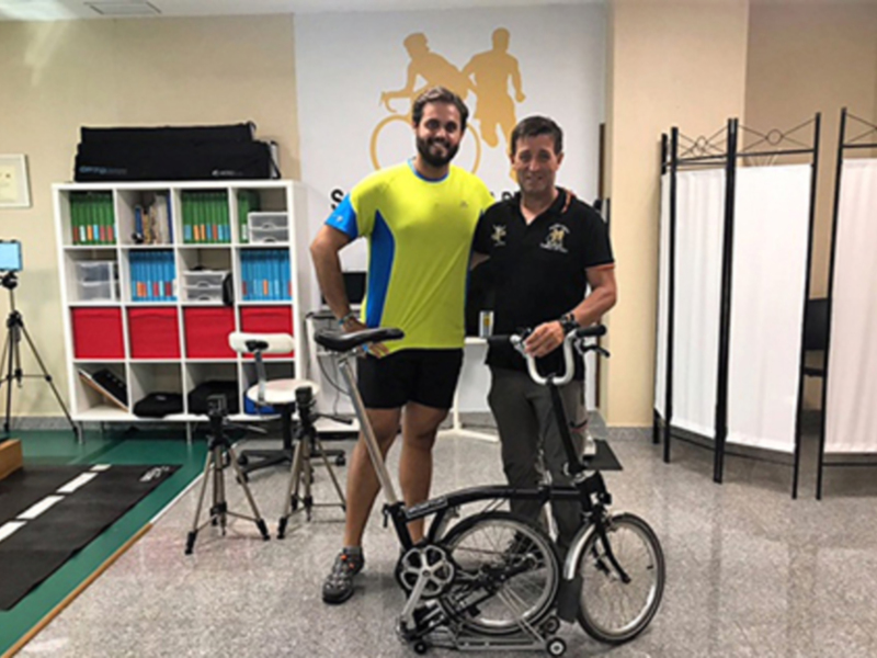 Juan Meira, de 27 años, ha pasado esta semana por la Unidad de Salud Deportiva del Hospital Vithas Nisa Sevilla, concretamente por el Área de Biomecánica de la Bicicleta que dirige Salvador Cabeza de Vaca, para ajustar la bicicleta a su cuerpo y poder recorrer los más de 3000 km que separan la ciudad gaditana de la italiana con las mayores garantías de éxito.