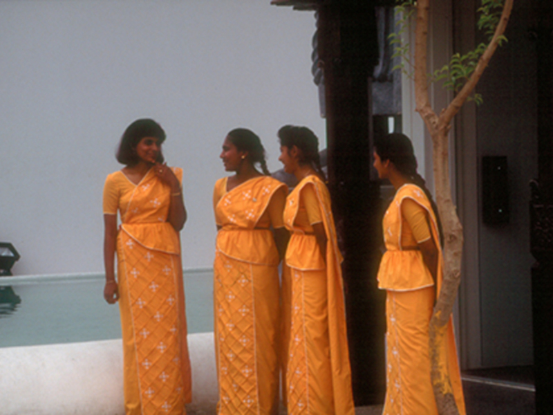 Entre todos los países participantes llamaba la atención el equipo humano del Pabellón de Srylanka. La fachada del edificio imitaba un templo sagrado y en la puerta de acceso las azafatas del Pabellón daban la bienvenida a los visitantes.