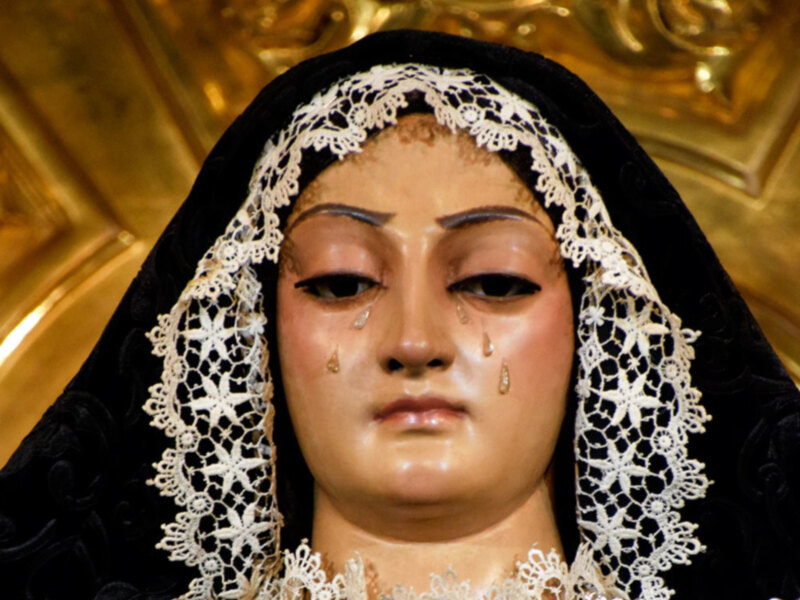 Disfruten de esta antigua imagen dolorosa de Nuestra Señora de los Dolores en su Soledad Coronada tan singular.