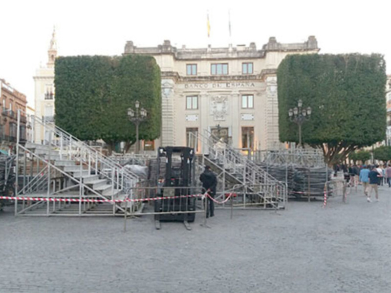 Comienzan los acopios en la Plaza de San Francisco del material necesario para el montaje de las tribunas, palcos y sillas.