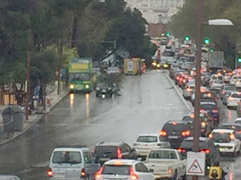 El Paseo de Colón afectado por la lluvia y la caída de árboles.