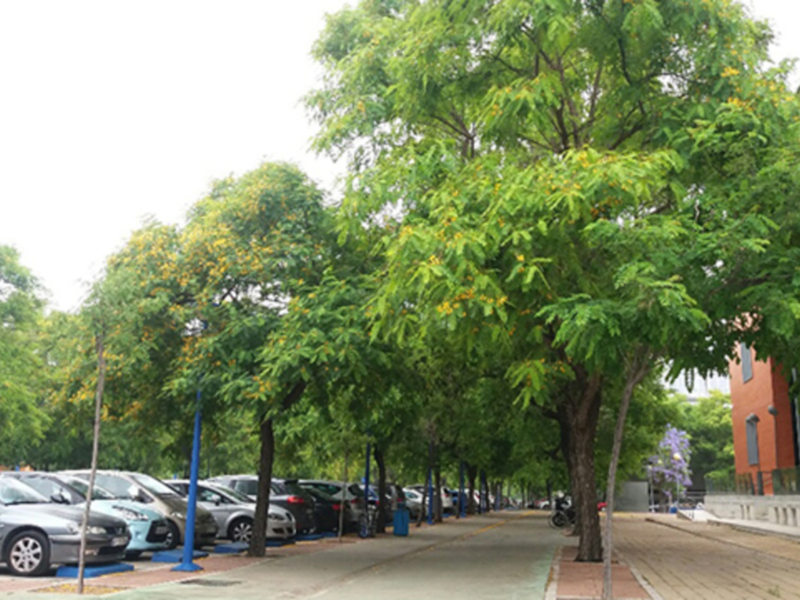 La especie Tipuana tipu es una especie muy implantada en vías, calles, avenidas y plazas en el sur y costa mediterránea e islas. Ha sustituido a las acacias tradicionales (Robinia pseuodoacacia) por su rápido crecimiento, vigoroso, sin plagas y enfermedades y una floración muy vistosa durante el mes de Junio en color amarillo.