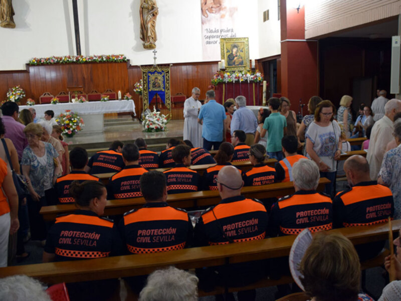 En la Parroquia del Santísimo Redentor de Sevilla, el voluntariado de Protección Civil hispalense participaron en los actos en homenaje a su Patrona, Nuestra Señora del Perpetuo Socorro con una ofrenda floral a la presencia del Icono oriental de la Virgen, que aparecen en el, Cristo, María, Cruz, Lanzada, esponja, que coincide con los del escudo redentorista, son los signo de la redención. Al término de la Misa litúrgica el párroco dio unas palabras de cariño hacia todos los voluntarios/as y afirmó que desde hoy la virgen del Perpetuo Socorro será aún más madre de todos los voluntarios y agregó, gracia por vuestra entrega al servicio de nuestra Ciudad y de cualquiera que necesite ayuda. Al termino de las palabras cariñosa del párroco bendijo las medalla del Icono Santo de la Virgen y las colocó sobre el pecho de los voluntariados/as de Protección Civil. Acto seguido el párroco entrego un cuadro del Icono de la Nuestra Señora del Perpetuo Socorro, para que lo tenga presente en la sede de sus servicios.