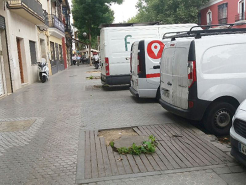 El tocón es la parte inferior del tronco del árbol que queda una vez talado el árbol. Es un punto de riesgo de caída, principalmente para personas mayores y niños que juegan saltando sobre los tocones. Estos tocones están en la calle Adriano y esta calle es una zona de mucho tránsito de turistas, con un comercio local muy importante, y muy especialmente cuando hay festejos taurinos por estar al lado de la Plaza de toros de la Maestranza. Los tocones no pueden permanecer años en la vía pública porque son un obstáculo irregular y suponen un riesgo de caída. No se puede esperar sine die la nueva plantación de árboles para proceder a su extracción, ya que es un riesgo innecesario para los ciudadanos.