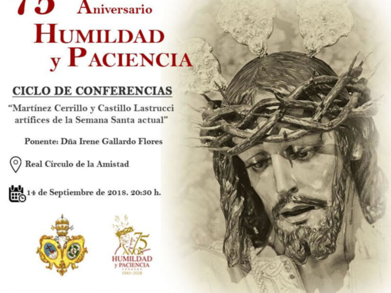 conferencia que pronunciaré el próximo viernes 14 de Septiembre D.M., en el Real Círculo de la Amistad, de Córdoba a las 20.30h, dentro del ciclo de conferencias que la Hermandad de la Paz y Esperanza de Córdoba ha programado con motivo el setenta y cinco aniversario de la bendición del Señor de la Humildad y Paciencia.