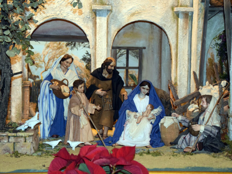 Este año las escenas recrean el nacimiento del Niño Jesús en la Macarena. El belén homenajea a las familias de la Macarena, de ahí que se ambiente en las casas y patios de vecinos del barrio.