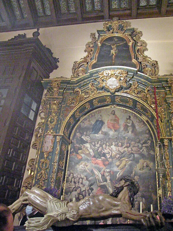 En la ribereña, localidad Sevillana de Alcalá del Río, se celebró el Vía-crucis, parroquial de la Asociación de Fieles, del Stmo Cristo del Buen Fin, el primer viernes del mes de febrero del 2022 a las 20´00 horas. Se realizó el rezo del Vía-crucis Piadoso, que resultó muy emotivo al realizarse por las naves del Templo Parroquial de Sta. María de la Asunción de la localidad, siendo portada la imagen, por devotos y hermanos, mientras se rezan las XIV estaciones. Fue presidida por el cura párroco y director espiritual de la Asociación, el Rvdo. José María Campos Peña. A su término estuvo expuesto para los hermanos, devotos y bienhechores, en piadoso Veneración el Stmo. Cristo del Buen Fin. La efigie del Cristo del Buen Fin se hunde en las raíces del tiempo, perteneciente a otra época y mentalidad alejada de la belleza serena y la rotundidad del barroco, retrotrayendo hasta plena mitad del siglo XVI, fecha en que se ejecutara sin demasiado margen de error la obra atribuida a las gubias del escultor flamenco Roque Balduque. La obra de tamaño natural, se adicta a la cabeza con potencia y corona de espina de orfebrería mostrando rasgo del rostro las facciones de un” Cristo Abuelo “ venerable y muy al gusto de la época, también se aprecia sobre la mejilla izquierda el hematoma producido por el golpe recibido en la casa de Anás. La oreja de ese perfil queda descubierta, mientras por el perfil derecho desciende una delgada y larga hebra de cabello que casi alcanza la herida del costado. Los ojos aparecen completamente cerrados, mientras que la boca queda entreabierta. La barba se separa en la mitad, dejando tres bucles separados de pelo a cada lado que caen sobre el pecho.