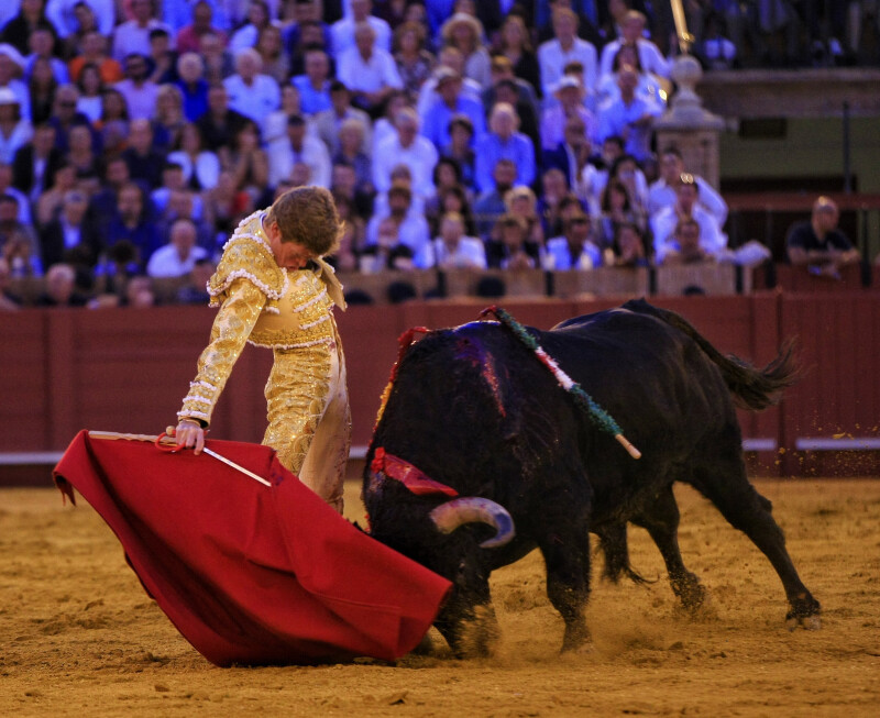 Borja Jiménez se fue de nuevo a la puerta de chiqueros en el quinto, al que toreó despacio a la verónica, destacando dos lances de cartel. El toro fue cuidado en el caballo, picando bien Tito Sandoval. Brindó a su hermano, Javier Jiménez, y comenzó de rodillas ligando con temple como prólogo a una faena de altura de principio a fin en la que toreó con verdad y pureza por ambos pitones a un gran toro de Garcigrande, humillado y con clase. Lo cuajó Borja, a gusto y sintiéndose en todo momento, cincelando la que hasta el momento es su mejor faena en Sevilla. La pena es que lo pinchó hasta en tres ocasiones, perdiendo un triunfo seguro.