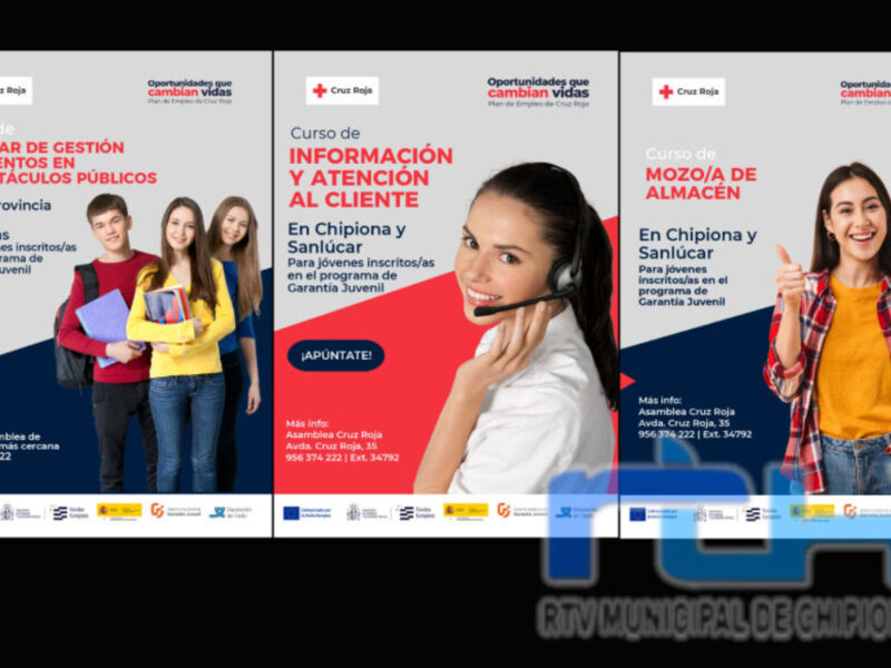 Los jóvenes chipioneros se vuelven a encontrar con una interesante y amplia oferta de cursos por parte de Cruz Roja. La ong ofrece nuevas oportunidades de formación gratuitas para desempleados y beneficiarios del programa de Garantía Juvenil en la provincia de Cádiz durante el primer semestre del año. Las formaciones están dirigidas a usuarios del Plan de Empleo de Cruz Roja y del proyecto Aceleradores GO, con edades comprendidas entre los 16 y 29 años.