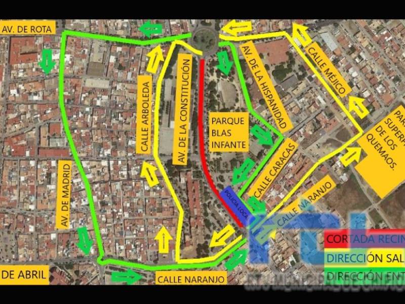En cuanto a la movilidad, la Policía Local ha establecido itinerarios alternativos tanto de acceso como de salida al área afectada. Los vehículos podrán acceder por la avenida de Madrid, la calle Naranjo, la avenida de la Hispanidad y la calle Caracas. Para la salida, se establecen las calles Naranjo, Méjico y Arboleda.